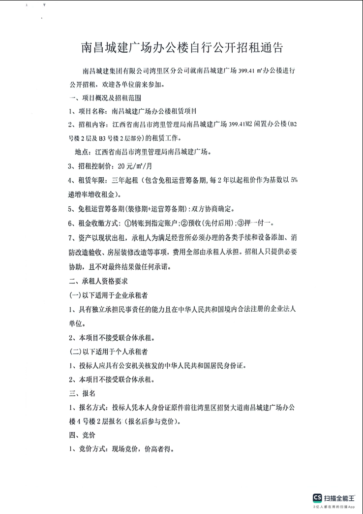 永利yl23411广场办公楼自行公开招租通告