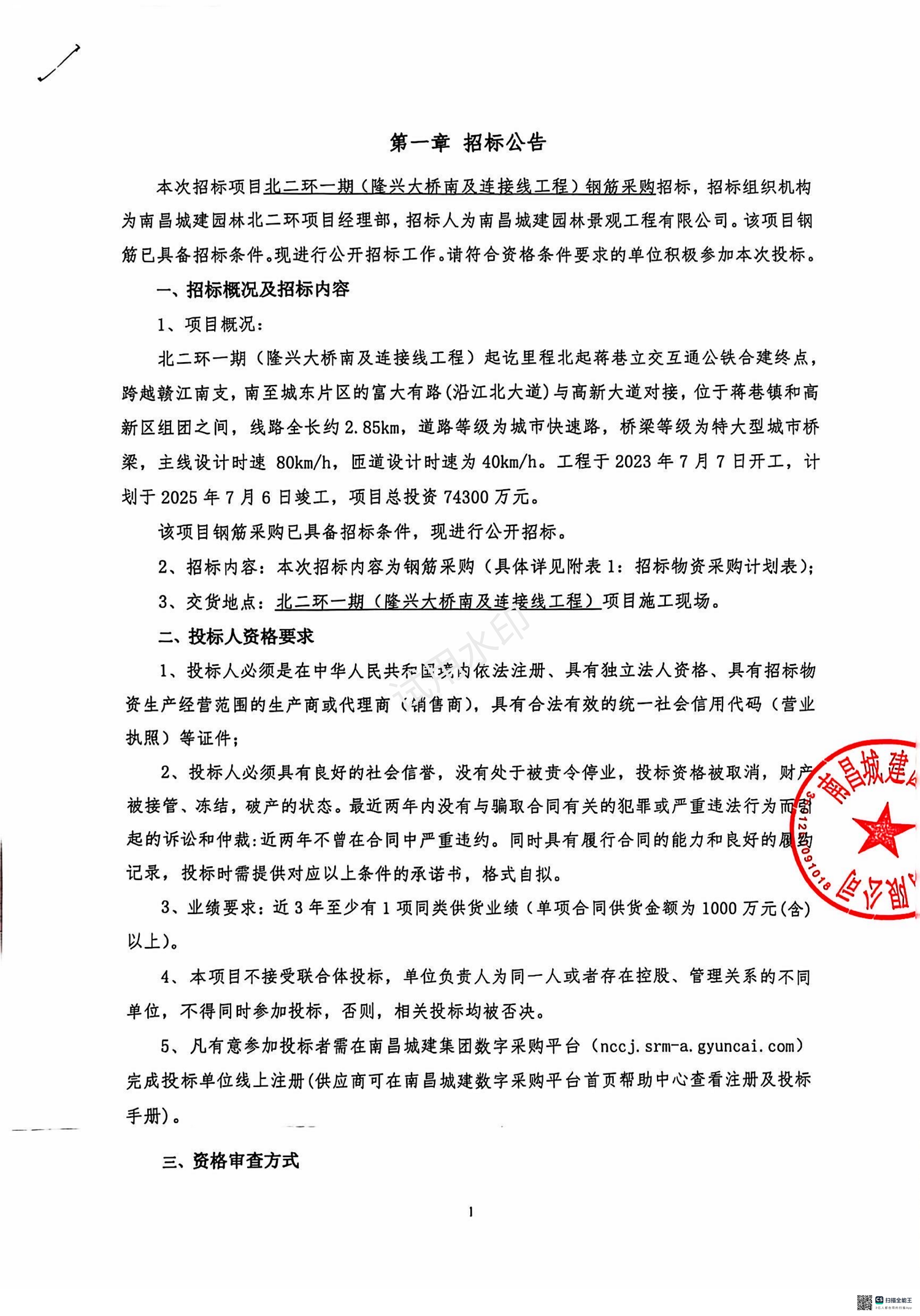 北二环一期(隆兴大桥南及连接线工程)钢筋采购招标公告