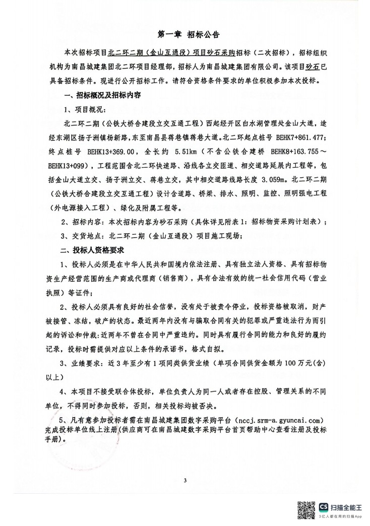 永利yl23411集团北二环二期(金山互通段)项目砂石采购(二次招标)招标公告