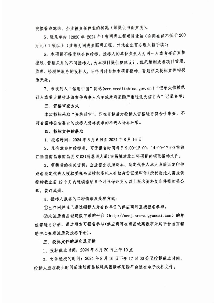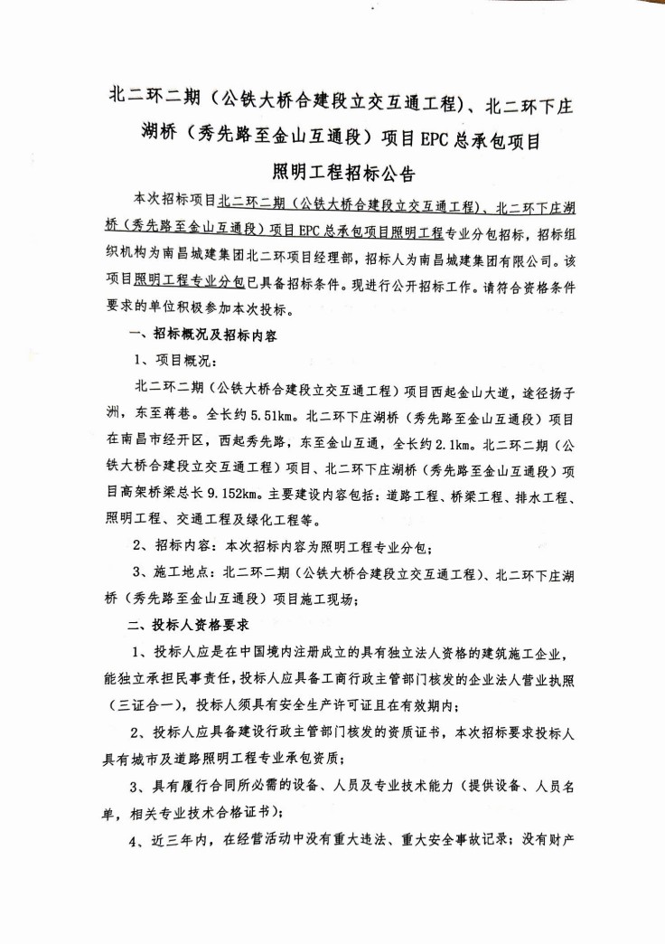 北二环二期、北二环下庄湖桥项目EPC总承包项目照明工程招标公告