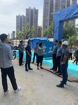 在项目现场,周莉群董事长就项目概况、工程建设及招商进展等情况进行了介绍。龚志强局长在听取了项目情况介绍后,又仔细询问了项目遇到的问题及商业部分的进展情况,周莉群董事长一一作答。了解了项目情况后,龚志强局长就如何进一步推进项目工作进行了交流,并提出了指导意见。