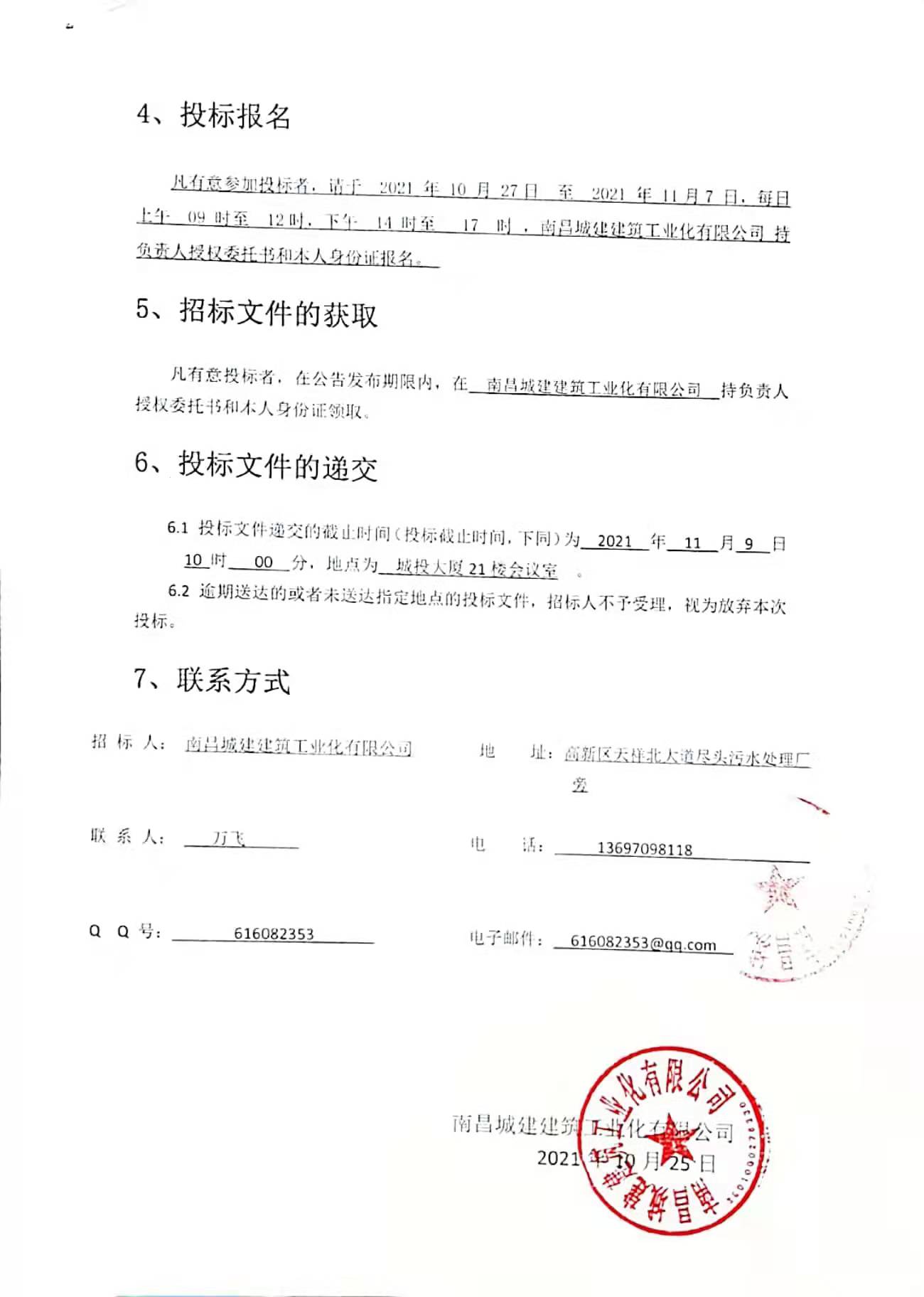 凡有意参加投标者,请于 2021 年 10 月 27日 至 2021 年 11月7 日,每日上午 09 时至 12时,下午 14 时至 17 时 ,永利yl23411建筑工业化有限公司 持负责人授权委托书和本人身份证报名。