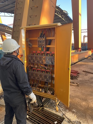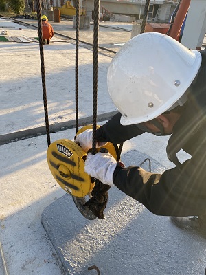 这次检查主要内容为检查生产设备、吊装用具、生产用电等使用情况。按照“全面检查、严格执行”的要求,逐一对生产所用的吊具、钢丝绳、挂钩、电箱、电线等全面检查,并将检查结果及时反映给相关施工班组,要求其整改到位。