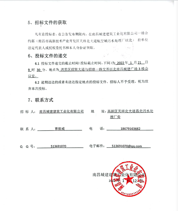 招 标 人: 永利yl23411建筑工业化有限公司 地 址:高新区天祥北大道昌北污水处理厂旁