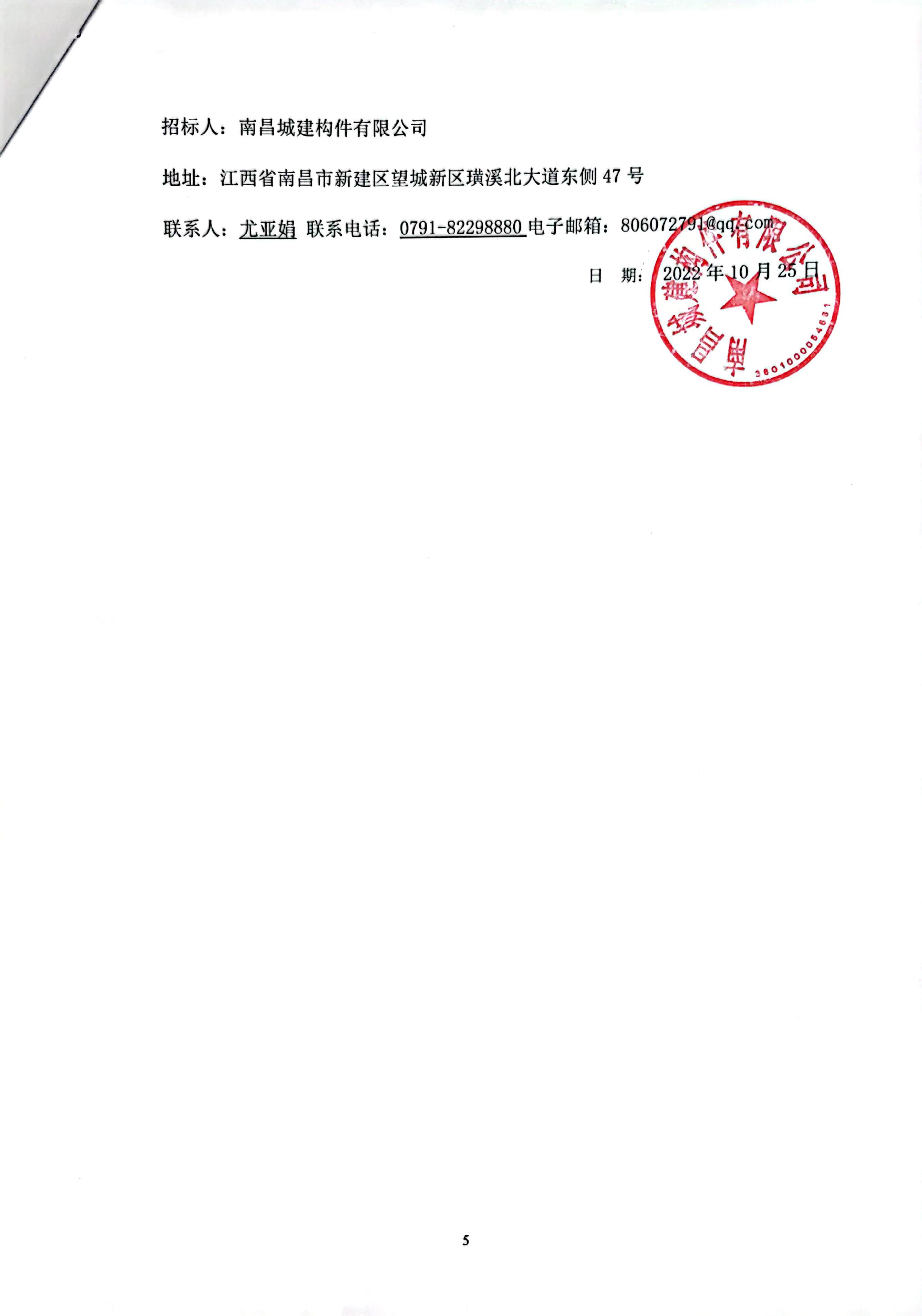 潜在投标人于2022年10月27日、10月28日携带身份证及营业执照复印件至永利yl23411构件有限公司办公楼一楼大办公室合约部领取招标文件(地址:南昌市新建区望城工业园区璜溪北大道47号)。