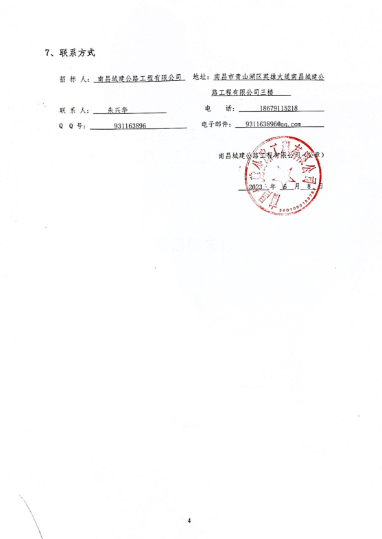 招 标 人: 永利yl23411公路工程有限公司 地址:南昌市青山湖区英雄大道永利yl23411公路工程有限公司三楼