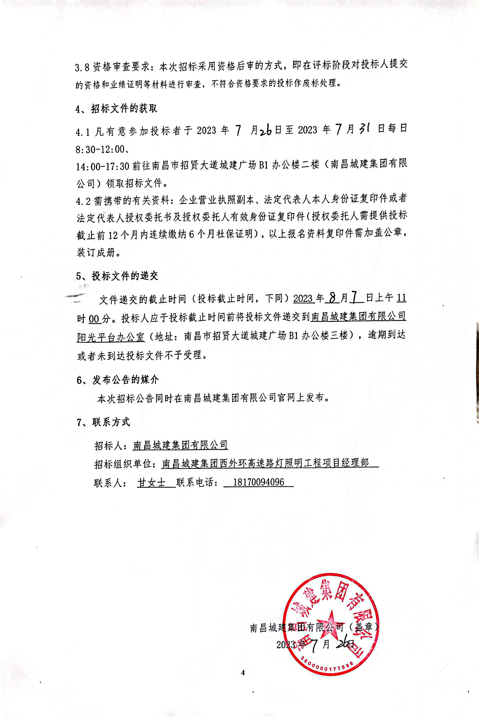 招标组织单位:永利yl23411集团西外环高速路灯照明工程项目经理部