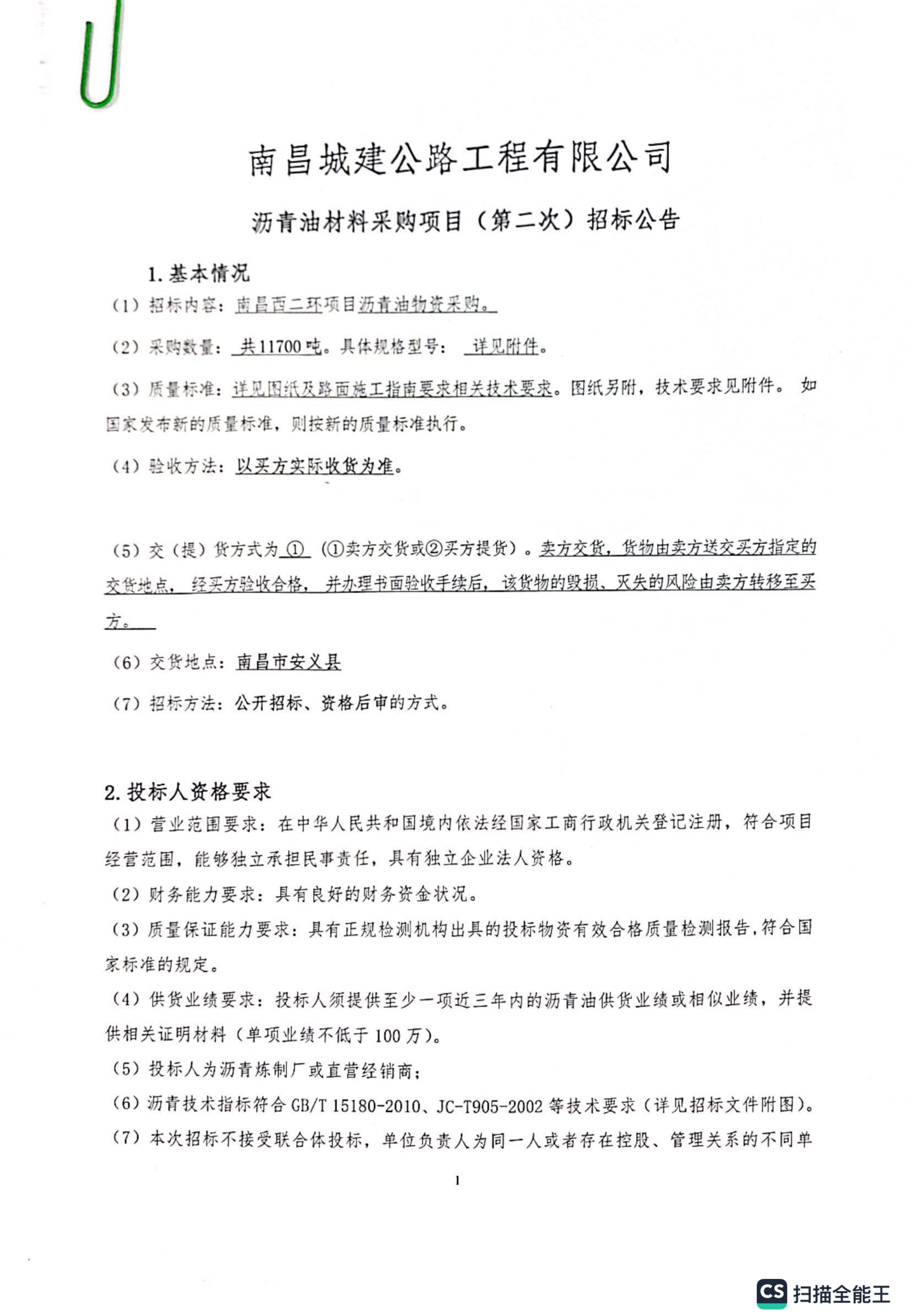 南昌西二环项目沥青油采购(第二次)招标公告PDF_01.jpg