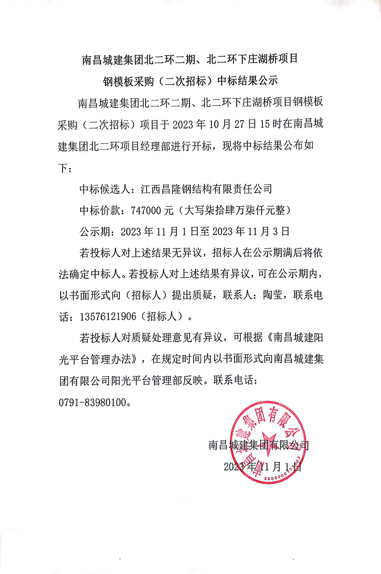 中标候选人:江西昌隆钢结构有限责任公司