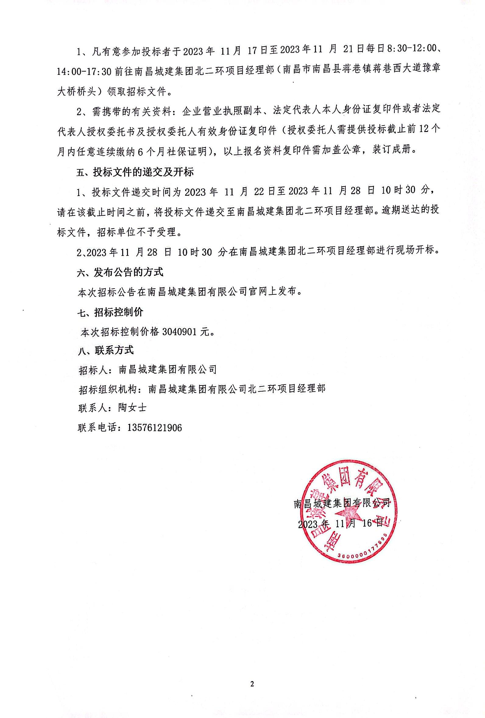 1、凡有意参加投标者于2023年 11月 17日至2023年11 月 21日每日8:30-12:00、14:00-17:30前往永利yl23411集团北二环项目经理部(南昌市南昌县蒋巷镇蒋巷西大道豫章大桥桥头)领取招标文件。