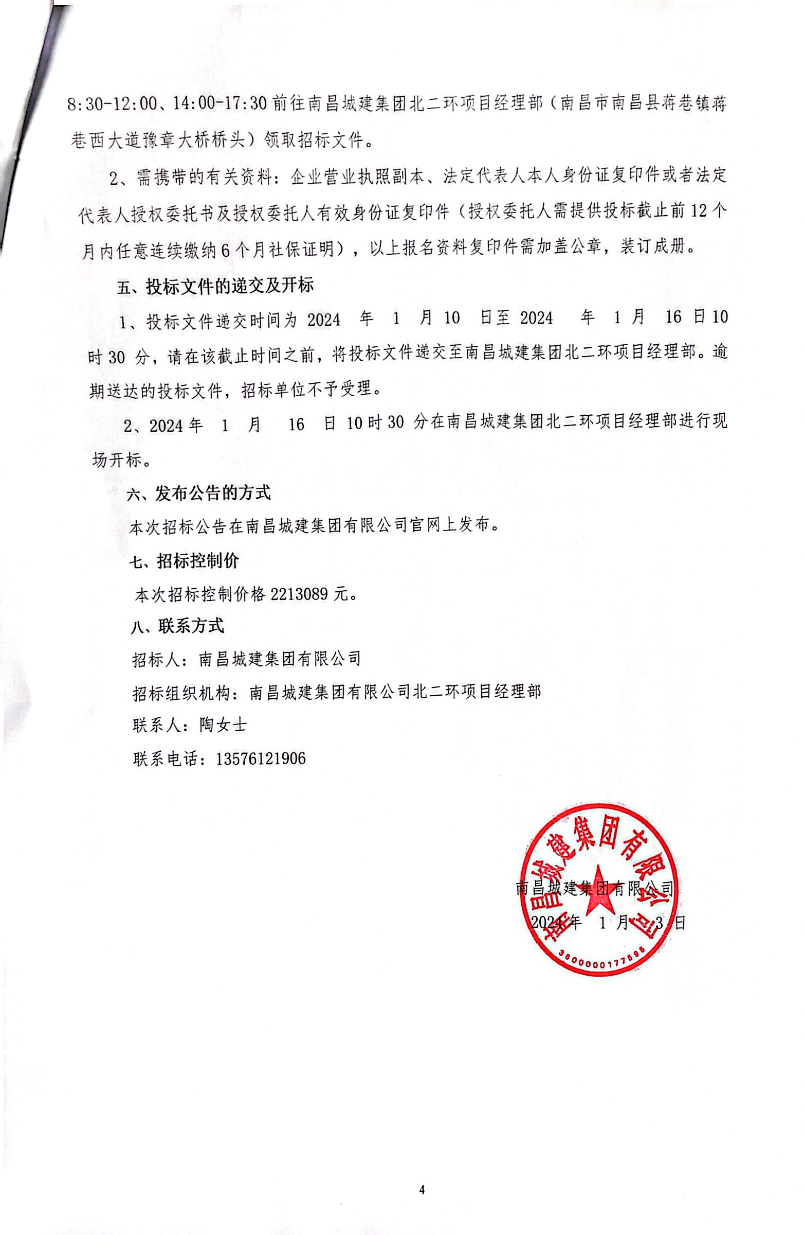 1、凡有意参加投标者于2024 年 1 月 4 日至 2024 年 1 月 9日每日8:30-12:00、14:00-17:30前往永利yl23411集团北二环项目经理部(南昌市南昌县蒋巷镇蒋巷西大道豫章大桥桥头)领取招标文件。