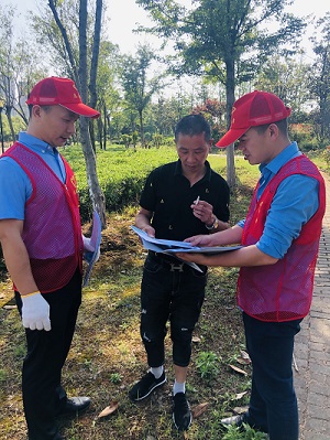 活动现场志愿者们身穿红马甲,手里拿着垃圾钳和垃圾袋,沿着公园小路、湖边和绿化带捡拾市民丢弃的生活垃圾。在捡拾垃圾的过程中有些垃圾让人恶心,志愿者们淡然处之,途经的老大爷见到,露出了欣慰的笑容。当志愿者来到一处湖边捡拾垃圾,正好有一群年轻人在湖边野餐,垃圾四处散落,当他们看到志愿者拿着捡拾垃圾工具的到来,露出了害羞的神情,急忙将散落的垃圾捡起装进塑料袋里,志愿者也赶紧上前帮忙,共同还给公园又一处干净的环境。