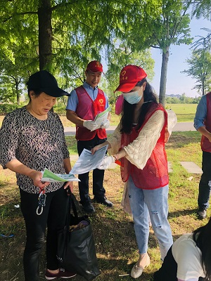 捡拾完垃圾,志愿者随即将事先准备好的垃圾分类宣传单和垃圾分类指导手册开始向公园里的市民散发,对来往的市民耐心讲述生活垃圾的分类及明细,并告知市民垃圾分类的重要性和意义。其中一位带着小孩来公园玩耍的爸爸聆听了我们的宣传,表示垃圾分类会从自身做起,教导小孩从小做起,让垃圾分类成为一种新时尚。