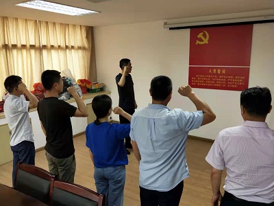 为扎实开展党史学习教育,推进支部全体党员学史明理、学史增信、学史崇德、学史力行,6月4日,构件党支部开展“党旗 我向您宣誓”主题党日活动,支部书记李庆同志带领全体党员站在鲜红的党旗前,大家高举右手,重温入党誓词:“我志愿加入中国共产党,拥护党的纲领,遵守党的章程,履行党员义务,执行党的决定,严守党的纪律,保守党的秘密,对党忠诚,积极工作,为共产主义奋斗终身,随时准备为党和人民牺牲一切,永不叛党。